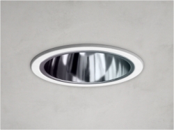 Standard Einteiliger, schmaler Leuchtenabschlussring. Der Reflektorrand liegt bündig in einer Vertiefung.