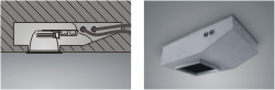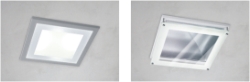 2-part interchangeable frame system. The luminaire is supplied with a fixed frame. A separate cover frame is secured with a spring clip. Suitable for retro-fitting photo-optic accessories.