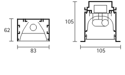 Parabolic louvre with mirror-finish surfaces. Aluminium with reflection-intensifying coating to increase the light output ratio. Computer-workstation compatible.