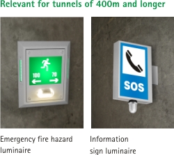 The revised, new edition of the "Directives for the Equipment and Operation of Road Tunnels" (RABT 2003), in conjunction with the "General Circular on Road Construction No. 19/2005", has come as a reaction to the increased risk of accident in European road tunnels. The increasing traffic volumes in road tunnels is, on its own, a factor that leads to a statistically higher probability of traffic accidents – as was confirmed by the devastating fire catastrophes in various Alpine tunnels in recent years.