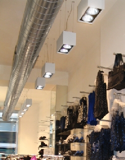 Szenische Beleuchtung findet in vielen Bereichen der Architektur ihre Anwendung. Gerichtete Strahler können nicht nur Produkte verkaufsfördernd hervorheben, sie kommen auch überall dort zum Einsatz, wo Räume durch eine zonierte Beleuchtung visuell voneinander getrennt werden sollen. |