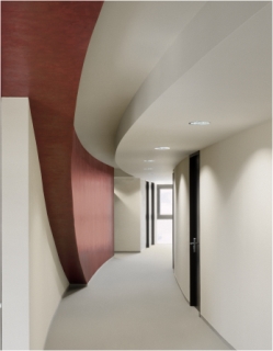 Eine Kombination aus einem zweiteiligen Ellipsoidreflektor und einem entblendenden Konus. Die Fokussierung des Lichtstroms erfolgt definiert unmittelbar vor der Lichtaustrittsöffnung der Leuchte. Die Reflektoreinheit ist aus Aluminium 99,98 geglänzt und stückeloxiert. Oberfläche in Silber hochglänzend, glatt.